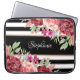 Burgundy Blush Floral Black Stripes gepersonalisee Laptop Sleeve