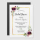 Aan de voorzijde: Een witte achtergrond met een nepgouden lijst. Gedemoreerd met donkerbruine bloemen, rozen, boho-veren en groen. Pas de naam van de bruid aan om te zijn en partijdetails aan te passen en voeg deze toe. Kan ook worden gebruikt als opslagdatum voor de gasten.