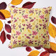 Een kussen in de open lucht in Bourgogne en goud. Bourgogne en goudbloemen op een lichtgele achtergrond.