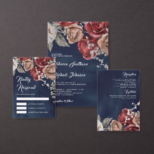 Burgundy Red Roses Navy Blue Wedding SuiteOntworpen door Shabbir D