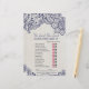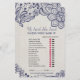 Dit spel op de plek van de boer en de marine is perfect voor een vrijgezellenfeest met landskiethema. Aan de voorkant van de spelkaart staat "hij zei dat ze zei", wat een leuke quiz is over de bruid en bruidegom. Op de achterkant van de kaart staat een woord met huwelijkswoorden en zinnen. Het ontwerp is voorzien van prachtige, fijne, blauwe, vlakke bloemen op een roomwitte achtergrond en een feministisch modern calligrafiefont. Pas de spelkaart aan met de bruidsnaam en de datum van het vrijgezellenfeest.