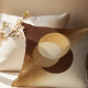 An elegant contrast design featuring ivory and gold overlapping circles on a warm brown base. This refined accent pillow adds a polished touch to neutral rooms, offering a modern focal point for living spaces, reading nooks, or bedroom decor.