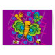 Het ontwerp van Butterflies bestaat uit drie vlinders in heldere, vette kleuren, twee kleine hommels en een achtergrond van roze en paarse met blauwe bloemen. Butterflies T-shirts, tassen, kaarten, stickers, sleutelhangers, mokken, muismatten, magneten, keepsakes en meer.