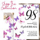 This pretty and whimsical 98th birthday invitation is perfect for a nice party and will set a fun and celebratory tone. This design features pink and purple butterflies, and is a nice feminine choice for a special event to celebrate a milestone birthday. Customize for your own birthday year, and search for "98" in my shop to see coordinating designs.