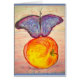 Een mooie blauwe vlinder die op een appel zit van een originele waterverf tekening!