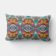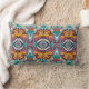 Lumbar Pillow in een digitaal batikpatroon van grote vlinders op een , arabeske medallion-achtergrond, in tinten ambergeel, oranje, aqua en beige