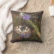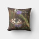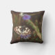 Sierkussen met stijlfoto in warme tonen. Mooie zwarte en witte vlinders en blauwe bloemen op een donkerbruine achtergrond. Voeg een charmerend zomeraccent toe aan uw thuisdecor!