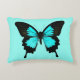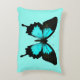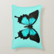 Accentkussen in een Swallowtail vlinder patroon - turquoise blauw en zwart - digitaal verbeterde fotoprint in zwart en zacht turquoise op een aqua achtergrond