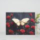 A stunning yellow butterfly perches delicately among vivid red roses, contrasted by a dark, textured backdrop, creating an atmosphere of elegance, grace, and nature's beauty.