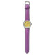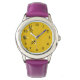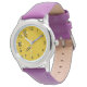 Drie grappige cartoon bijen vliegen op een geweven gele achtergrond omringd door zwarte stippen. Veel plezier met het passeren van de tijd met dit zeer schattige horloge!