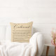Cabernet-wijnkussen die de druiven beschrijven en hoe ze moeten worden gebruikt. De achterkant van de kussen heeft het oogstbeeld van een druivencluster.