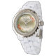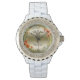 Elegant zwart en goud bloemencaduceus horloge voor verpleegkundigen en verpleegkundigen studenten- Zwart caduceus symbool boven chique zwarte letters die NURSE op een gouden gradiënt cirkel met faux gouden metalen rand leest. Ingelijst met een delicate pastel waterverf trendy boho bloemenkrans in perzik abrikoos en groene bladeren tinten. Overeenkomende gouden metallic effect klok gezicht nummers. Zeer elegante en moderne look, ideaal voor een lente mode accessoire voor een verpleegkundige. Pas tekst aan en wijzig deze in naam, andere professionele zorgtitel of aangepast bericht. Meisje en handig geregistreerd verpleegkundige afstuderen cadeau voor pinning ceremonie of cadeau voor verpleegkundige student.