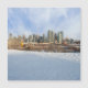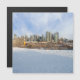 Een pittoresk uitzicht van de skyline van Calgary versierd met sneeuw op de voorgrond, geplaatst tegen een achtergrond van helderblauwe luchten, een mengeling van stedelijke charme met de sereniteit van de winter.