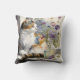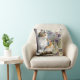 Decoratorkussen met het prachtige schilderij van een calicaanse kat naast een vaas van paarse bloemen en een raam, waarbij het zonlicht de kamer ingaat.