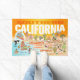 Een spectaculaire kaart van de cartoon van Zuid-Californië, die Los Angeles, Anaheim, Long Beach, San Diego en vele andere steden en de meeste stranden toont. Deze grilachtige illustratie zit vol plezier - een surfer hangt tien terwijl een zeemeermin op een rots springt, een dodelijke walvis uit het water lekt en een stier in een stierenvechter, allemaal onder de warme Californische zon die er hoog boven schijnt.