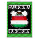 Het Californische Hongaarse ontwerp, in de stijl van een cool Amerikaans routebord. De tekst in Californië Hongaars ligt boven en onder, met de vlag van de staat Californië en de vlag van Hongarije binnen het routebord. Geweldig voor Californiërs van Hongaarse afkomst, en voor ex-pats in de Republiek Californië!