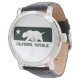 California Republic Design Watch met lederen band, met het ontwerp van de vlag van Californië in zwart-wit. Zou een ideaal cadeau-item maken.