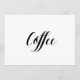 Eenvoudig en elegant zwart-wit kalligrafiestijk "Koffie" trouwbord. Dit 'Koffie' bruiloft-teken staat goed op een mattepapier. Als je iets meer traditioneel nodig hebt, gebruik dan de Laid, Linen of Columned, voor een rustig gevoel gebruik je de Artisan Kraft, als je een tikje glam wilt toevoegen, gebruik dan de Luxe. Het klikken op de "pas het"knoop aan u tot het redacteurshulpmiddel kunt toegang hebben en een verschillende achtergrondkleur kiezen. Dit is een vlak gedrukt 5-inch x 7-inch kaartbord, dat er echt elegant uitziet in een afbeelding lijst.