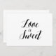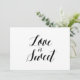 Eenvoudige en elegante zwarte en witte kalligrafie-stijl "Love is Sweet" trouwbord. Dit 'Love is Sweet' trouwbord ziet er geweldig uit op een matte paper, als je iets meer traditioneel nodig hebt, de Laid, Linen of Columned, voor een rustig gevoel gebruik van de Artisan Kraft, als je een tikje glam wilt toevoegen, gebruik dan de Luxe. Dit is een vlak gedrukt 5-inch x 7-inch kaartbord, dat er echt elegant uitziet in een afbeelding lijst.