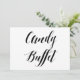 Eenvoudig en elegant zwart-wit kalligrafiestijl "Snoep Buffet" trouwbord. Dit "Snoep Buffet" trouwbord ziet er geweldig uit op een mattepapier, als je iets meer traditioneel nodig hebt, gebruik dan de Laid, Linen of Columned, voor een rustig gevoel gebruik van de Artisan Kraft, als je een tikje glam wilt toevoegen, gebruik dan de Luxe. Het klikken op de "pas het"knoop aan u tot het redacteurshulpmiddel kunt toegang hebben en een verschillende achtergrondkleur kiezen. Dit is een vlak gedrukt 5-inch x 7-inch kaartbord, dat er echt elegant uitziet in een afbeelding lijst.