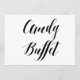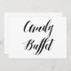 Eenvoudig en elegant zwart-wit kalligrafiestijl "Snoep Buffet" trouwbord. Dit "Snoep Buffet" trouwbord ziet er geweldig uit op een mattepapier, als je iets meer traditioneel nodig hebt, gebruik dan de Laid, Linen of Columned, voor een rustig gevoel gebruik van de Artisan Kraft, als je een tikje glam wilt toevoegen, gebruik dan de Luxe. Het klikken op de "pas het"knoop aan u tot het redacteurshulpmiddel kunt toegang hebben en een verschillende achtergrondkleur kiezen. Dit is een vlak gedrukt 5-inch x 7-inch kaartbord, dat er echt elegant uitziet in een afbeelding lijst.
