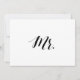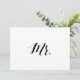 Eenvoudig en elegant zwart-wit kalligrafiestijk "Mr." trouwbord. Dit 'Mr' trouwbord ziet er geweldig uit op een mattepapier. Als je iets meer traditioneel nodig hebt, gebruik dan de Laid, Linen of Columned, voor een rustisch gevoel gebruik van de Artisan Kraft. Als je een tikje glam wilt toevoegen, gebruik dan de Luxe. Het klikken op de "pas het"knoop aan u tot het redacteurshulpmiddel kunt toegang hebben en een verschillende achtergrondkleur kiezen. Dit is een vlak gedrukt 5-inch x 7-inch kaartbord, dat er echt elegant uitziet in een afbeelding lijst.