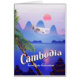 Cambodja "Reis in Adventure", -stijl, reisposterprint in de stijl van de avond met een licht vliegtuig dat laag over het landschap vliegt.