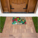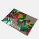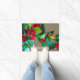 Een welkomstmat van bloemenfeest met Camellia bloeit origineel waterverf kunstwerk van kunstenaar Sacha Grossel tegen een aardse, aanpasbare gekleurde achtergrond met welkomstbord. Een huiselijke, lieve welkomstdeurmat perfect voor uw huis.