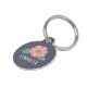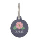 Probeer dit charmante huisdier ID label, met een prachtig bloemenmotief. Het label heeft een dieproze achtergrond die op elegante wijze het hoofdplaatje van een camelia in zacht roze met groene bladeren laat zien. Onder de bloem staat de naam van je huisdier geschreven in een eenvoudig maar verfijnd serif lettertype, wat suggereert dat het huisdier dat dit label draagt een elegante of sierlijke persoonlijkheid kan hebben. Het algemene ontwerp van het label is schoon en modern, met een vleugje klassieke schoonheid, waardoor het een stijlvol accessoire is voor elk huisdier.