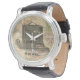 uitziende horloges voor mannen, van red_dress, met een digitale collage van cameraontwerp (merk RAY) op de antiek kaart van Afrika, in warme tinten beige en zacht roze. Om het thema van verkenning en expedities van oude tijden op te roepen, heeft de antiek achtergrond een briefkaarten textuur, met handgeschreven schrift, de woorden "postkaart", een groene "een cent" Amerikaanse postzegel en een rubberen stempel (jaar 1909). Personaliseer eenvoudig geïnspireerde horloges, met jouw naam / eigen tekst. Antiek uitziende collage digitaal gemaakt door red_dress, met behulp van illustraties.