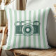 Camera on Sea Green Stripes, Accent Pillow, Kussen