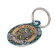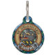 Campbell crest badge omringd door een riem en gesp over jurk tartan achtergrond. Aangepaste tekst aan beide zijden.