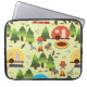Camping scene - caravan, kampeerstoelen, vuurpleis laptop sleeve