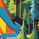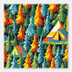 Camping thema tenten en pijnbomen behang