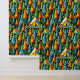 Retrotenten en tipi's natuur kleuren blauw, sinaasappel en groen. Cool stick en schil behang voor degenen die houden van kamperen.