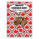 Een grappige molen breekt door een muur van paarse bladtegels op de cover van dit wenskaart op Canada Day. Gelukkig Canada Dag! Broer en zuster-in-Law, tekst op de cover. Vet hedendaags ontwerp in rood, wit, zwart, en browns.