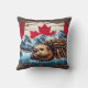 Een Canadese bever bouwt zijn lodge in de buurt van een rivier, omringd door bergen en een vloeiende waterval, en toont zijn natuurlijke habitat.