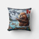 Een Canadese bever is bezig met het houden van takken in de buurt van een bergmeer, met vissen zwemmen en de Canadese vlag zwaaien in de wind.