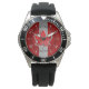 Een retro Canadees stijlvol esdoornblad op maat mode horloge cadeau voor alle feestelijke gelegenheden en vriendelijke bijeenkomsten. Gepresenteerd hier als een zilveren chroom zoals applique op een racy vlag kleuren koolstofvezel stijl achtergrond print. Een geweldig geschenk om te delen of te draag. Een ontwerpverklaring die zeker indruk zal maken bij formele en casual gelegenheden. Of misschien een last minute cadeau voor jezelf of voor iemand speciaal op je lijst.