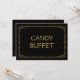 Eenvoudige en elegante art deco stijl "Candy Buffet" bruiloftsbord, gepersonaliseerd met uw eigen tekst, met een gouden art deco lijst over een zwarte achtergrond.