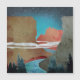 Een prachtig landschap met unieke texturen die een kanjonlandschap tonen met een rivier- en sterrenhemel en schaduwen van bruin, blauw en magenta.