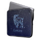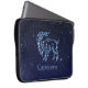 Laptophoes met het symbool voor Capricorn in zacht zilverblauw, bedekt met de sterren van de constellatie, tegen een sterrenhemelachtergrond van diep-middernacht blauw tot zwart