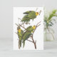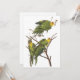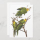 Dit is een groep van vier Carolina Parakeets die op een tak zitten. Er zijn drie mannetjes en één vrouw. Het vrouw is allemaal groen, terwijl de mannetjes heldere gele koppen hebben met rood rond en tussen hun ogen.