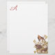 Verstuur je warme wensen met deze verzorgingsfamilie van vogels die rechts onderaan in dit monogrammed papier zitten. Audubon's Carolina Pigeon of Turtle Dove (Mourning Dove) familie negeert in een boom met delicate witte bloemen. kunstreproductie van een origineel John James Audubon. De monogram kleur wordt bemonsterd vanuit het roze midden van de bloemen om perfect te coördineren met de illustratie.