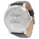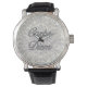 Dit elegante horloge heeft de Latijnse tekst "carpe diem" die de drager eraan herinnert om de dag te plukken en er het beste van te maken. Achtergrond: wervelingen.