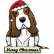 De schattige kerstversiering van Basset Hound is voorzien van een rode kersthoed op het hondenras. Het bord onder hem staat: "Vrolijk kerstfeest!" Kute Basset Hound Xmas-versieringen!