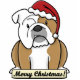 Schattige Engelse kerstversiering met Bulldog met het hondenras dat een rode kersthoed draagt. Het bord onder hem staat: "Vrolijk kerstfeest!" Kute hondenliefhebber tekening ziet er schattig uit op je kerstboom! Bruine en witte jas.