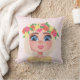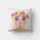 Kut meisje met bloem op blond haar en grote ogen op roze getextureerde achtergrond.