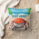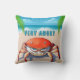 Krab in cartoon-stijl tentoongesteld op een tropisch strand met palmbladeren en serene blauwe oceaangolven. Vertegenwoordigt zomerse vibes, het leven in de oceaan en een uitje aan de kust. Levendige illustratie met een eigenzinnige en grillige toon.