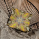 Dit funky mandala-bloemontwerp is geel, grijs en rood in een cartoon stijl. Drijvende geometrische visuals voor de moderne hippie of het liefhebber van levendige kleuren!